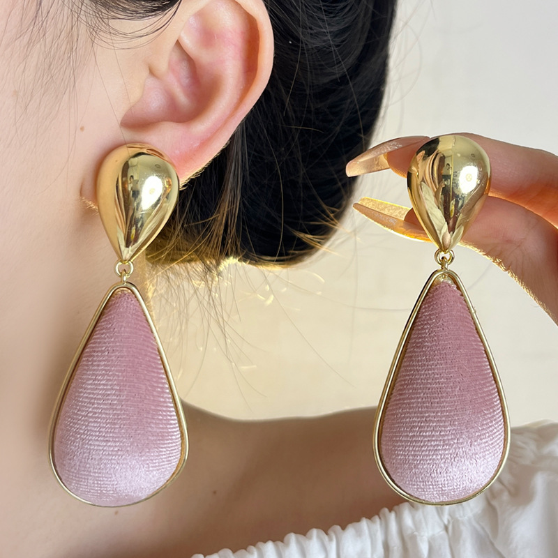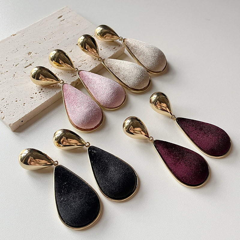Retro velvet cloth water droplet mirror metal exaggerated earrings